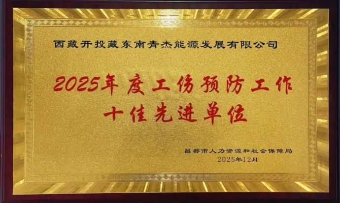 12月9日,昌都市人力資源和社會保障局授予西藏開投藏東南青杰能源公司“2025年度工傷預(yù)防工作十佳先進單位”稱號,以表彰公司在工傷預(yù)防與安全管理方面取得的扎實成效。