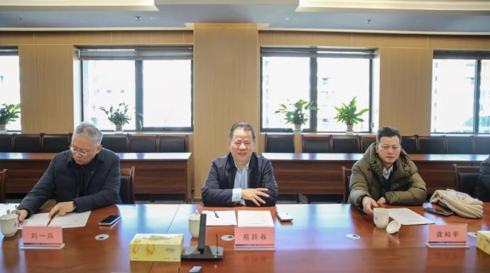 祁騰武與水電總院常務(wù)副院長(zhǎng)、公司總經(jīng)理易躍春一行座談