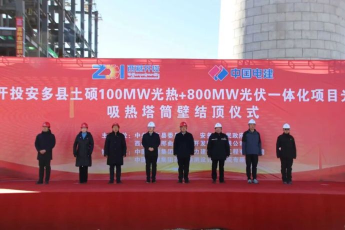 15日上午,西藏開(kāi)投集團投資建設的全球海拔最高、西藏首個(gè)塔式光熱電站——西藏開(kāi)投安多土碩100MW光熱+800MW光伏一體化項目吸熱塔順利結頂。吸熱塔從破土動(dòng)工到主體完工僅用233天,創(chuàng )下同期同類(lèi)型項目結頂最快紀錄。